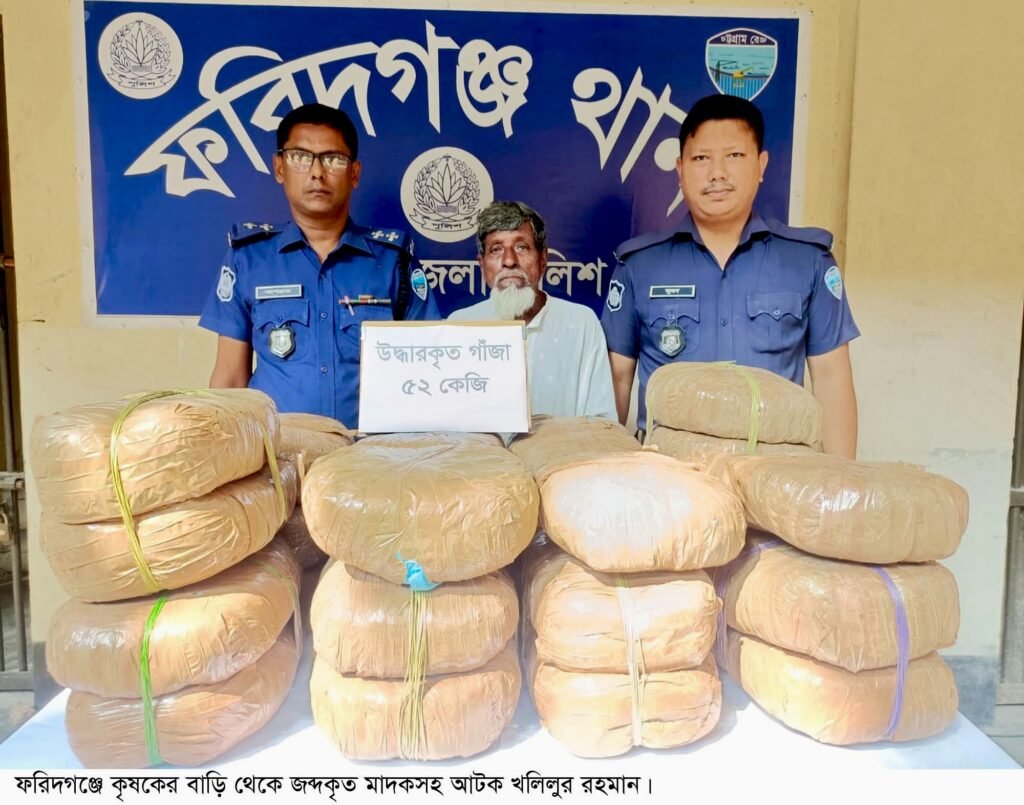চাঁদপুরের ফরিদগঞ্জে এই প্রথম সর্বোচ্চ গাঁজার চালান ধরা পড়ল গ্রামবাসীর হাতে। শনিবার (২৫ অক্টোবর ২০২৫) সকালে উপজেলার সকদীরামপুর গ্রামে কৃষক খলিলুর রহমানের বাড়ি থেকে ২৬টি প্যাকেটে থাকা বিপুল পরিমাণ ৫২ কেজি গাঁজা আটক করা হয়। পরে তা আইনশৃঙ্খলা রক্ষাকারী বাহিনীর হাতে তুলে দেওয়া হয়।
