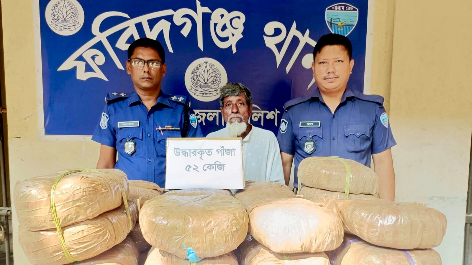 সন্দেহ হওয়ায় গ্রামবাসী বাড়িটি ঘেরাও করে এবং সেনাবাহিনী ও পুলিশকে খবর দেয়। ইতোমধ্যে ২৬টি প্যাকেটে থাকা আনুমানিক ৫২ কেজি গাঁজার চালান তারা বাগান থেকে একটি ঘরে নিয়ে রাখে। খবর পেয়ে ফরিদগঞ্জ থানার ভারপ্রাপ্ত কর্মকর্তা (ওসি) মোহাম্মদ শাহ আলম একদল পুলিশ নিয়ে ঘটনাস্থলে পৌঁছে গাঁজার চালানটি জব্দ করেন।