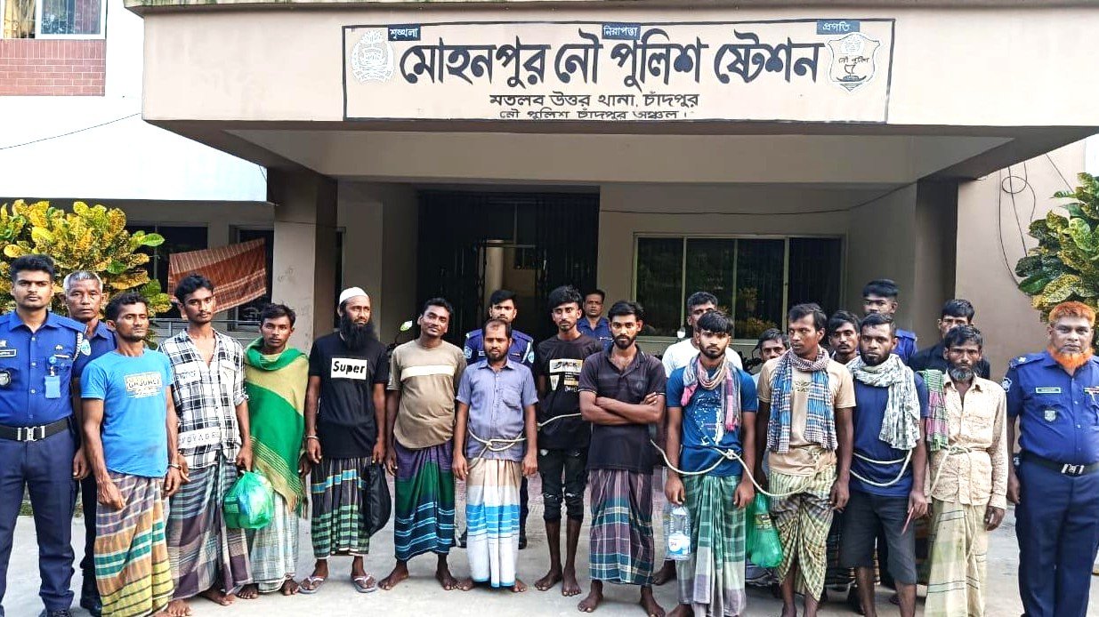 আটককৃত জেলেরা হলেন রিপন মোল্লা (২৫), মো. রিপন দেওয়ান (৪৪), মো. মফিজুল (৩৫), মো. জসিম মিজি (৩৫), মো. আকাশ (২০), মো. উজ্জল (৪৫), স্বপন সিকদার (২৪), মো. শান্ত মাদবর (২০), মো. শাহিন সরদার (৩৪), আল আমিন (৩৫), মো. জব্বার সিকদার (৪৫), মো. বিল্লাল গাজী (৪০), মো. নাসির ঢালী (৩২), আব্দুর রাজ্জাক (২০), মো. আরিফ (১৯) ও মো. জাহাঙ্গীর মোল্লা (৩৭)।
