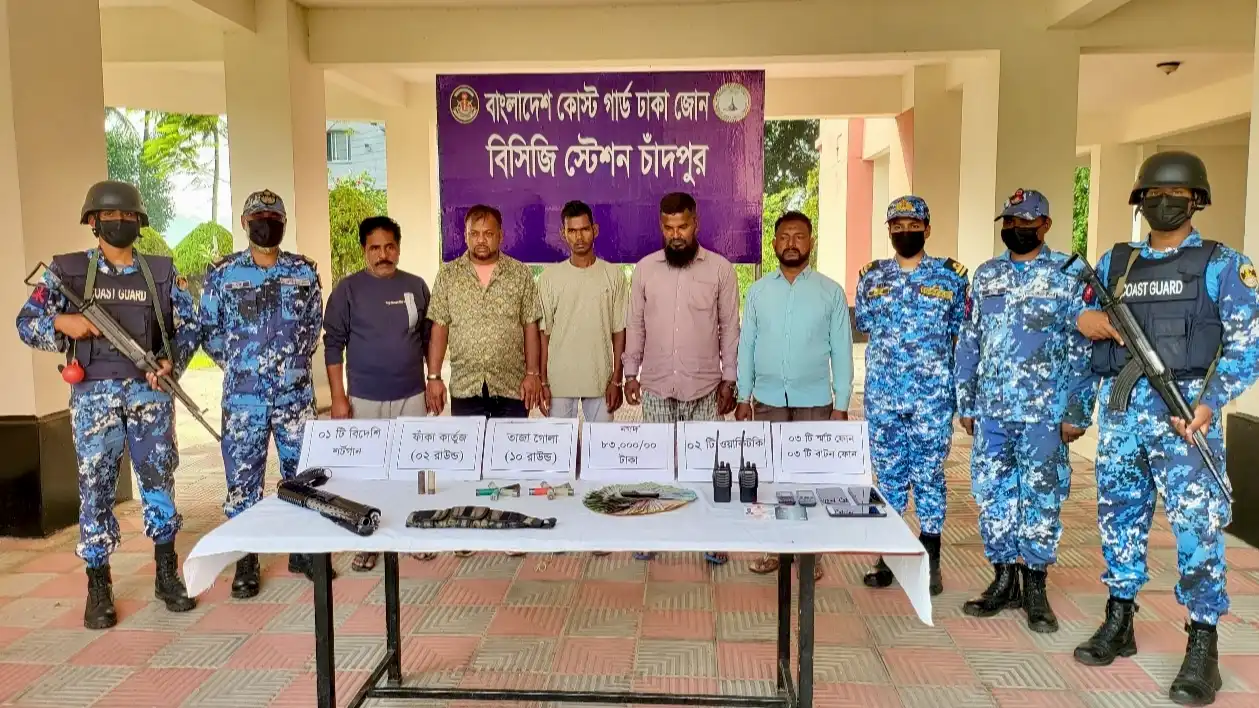 চাঁদপুরের মোহনপুরে অভিযান চালিয়ে কুখ্যাত ডাকাত কিবরিয়া মিয়াজির সন্ত্রাসী গ্রুপের ৫ সদস্যকে আটক করেছে বাংলাদেশ কোস্ট গার্ড। তাদের কাছ থেকে ১টি বিদেশি শটগান, গোলাবারুদ, ১টি স্পিড বোট ও বিপুল পরিমাণ নগদ অর্থ উদ্ধার করা হয়েছে। এই গ্রুপটি দীর্ঘদিন ধরে অভ্যন্তরীণ নৌ রুটে চলাচলরত নৌযানগুলোতে চাঁদাবাজি, ডাকাতি ও অপহরণের মতো নানা অপকর্ম করে আসছিল।