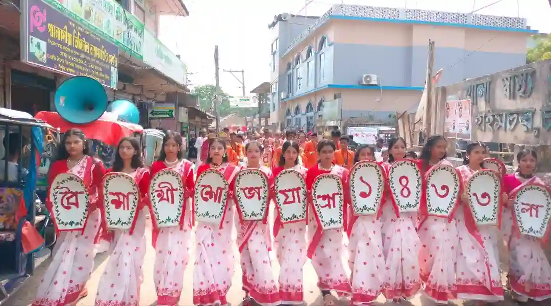 সকাল ১০টায় উপজেলা নির্বাহী অফিসার অমিত রায়-এর নেতৃত্বে উপজেলা পরিষদ চত্বর থেকে একটি বর্ণাঢ্য রেলি ও মঙ্গল শোভাযাত্রা বের করা হয়। রেলিটি উপজেলা সদরের গুরুত্বপূর্ণ সড়কগুলো প্রদক্ষিণ করে পুনরায় উপজেলা পরিষদ প্রাঙ্গণে এসে শেষ হয়। শোভাযাত্রায় বিভিন্ন শিক্ষাপ্রতিষ্ঠানের শিক্ষক-শিক্ষার্থী ও সর্বস্তরের মানুষ বাঙালির ঐতিহ্যবাহী পোশাক ও সাজসজ্জায় অংশ নেন।