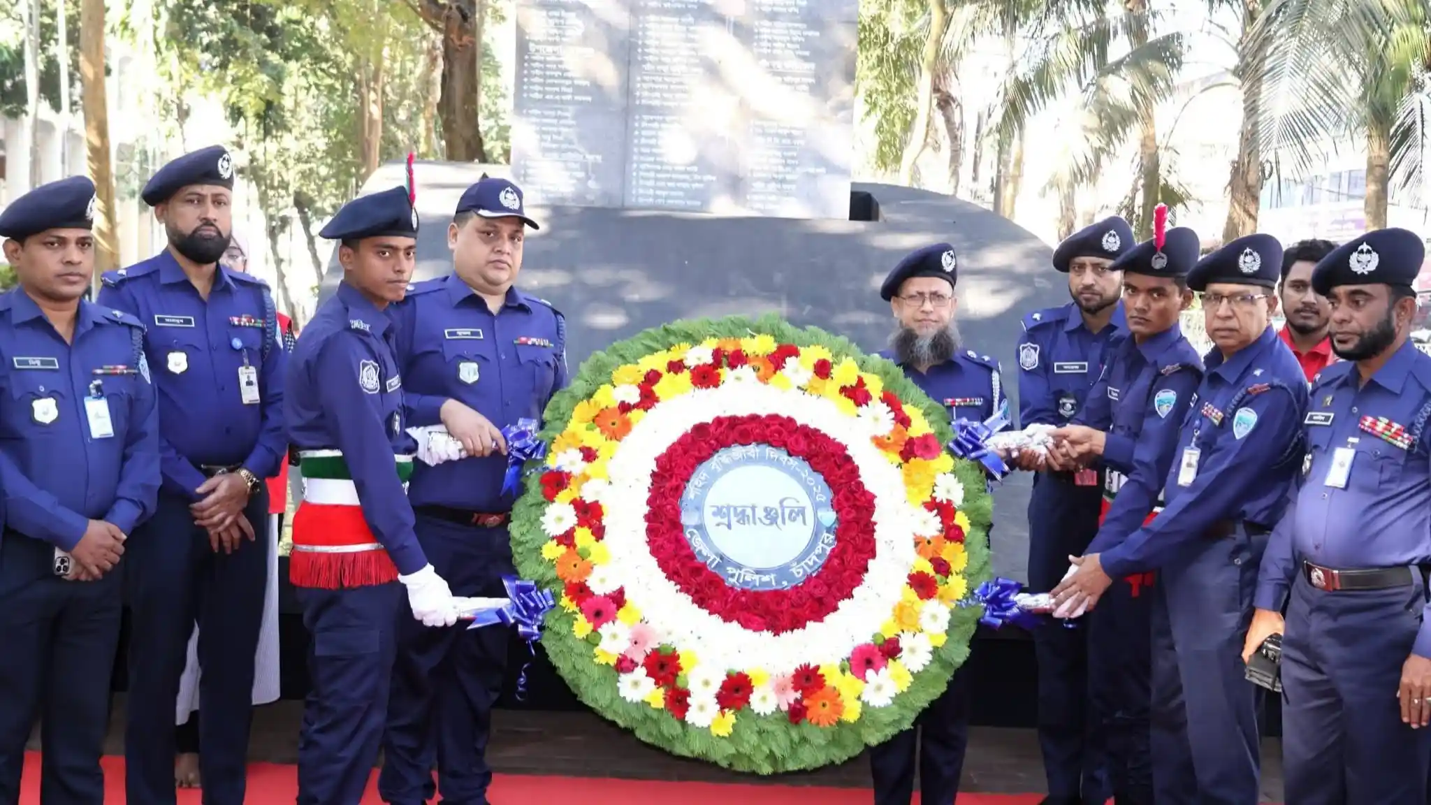 দেশের সূর্যসন্তানদের প্রতি গভীর শ্রদ্ধা জানিয়ে পুষ্পস্তবক অর্পণ করেন চাঁদপুর জেলার পুলিশ সুপার (এসপি) মোঃ রবিউল হাসান।