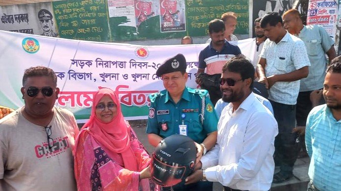 সড়ক নিরাপত্তা দিবস-২০২৫ উপলক্ষে জনসচেতনতা বৃদ্ধি এবং দুর্ঘটনা রোধের লক্ষ্যে খুলনা নগরীতে বিনামূল্যে হেলমেট বিতরণ কর্মসূচি পালিত হয়েছে। খুলনা সড়ক বিভাগ ও খুলনা মেট্রোপলিটন পুলিশের (কেএমপি) যৌথ উদ্যোগে গতকাল সোমবার (২০ অক্টোবর) নগরীর গুরুত্বপূর্ণ শিববাড়ি মোড় ও জিরোপয়েন্ট এলাকায় এই বিশেষ কর্মসূচি আয়োজন করা হয়।