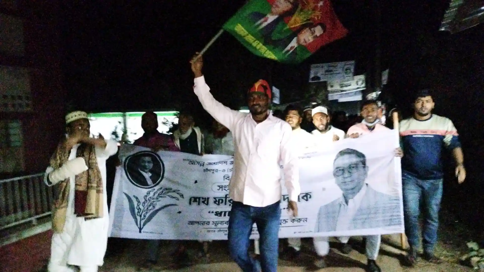 চাঁদপুর-৩ আসনের ধানের শীষ প্রতীকের প্রার্থী শেখ ফরিদ আহমেদ মানিকের সমর্থনে হাইমচরে বিশাল মিছিল ও গণসংযোগ অনুষ্ঠিত হয়েছে।