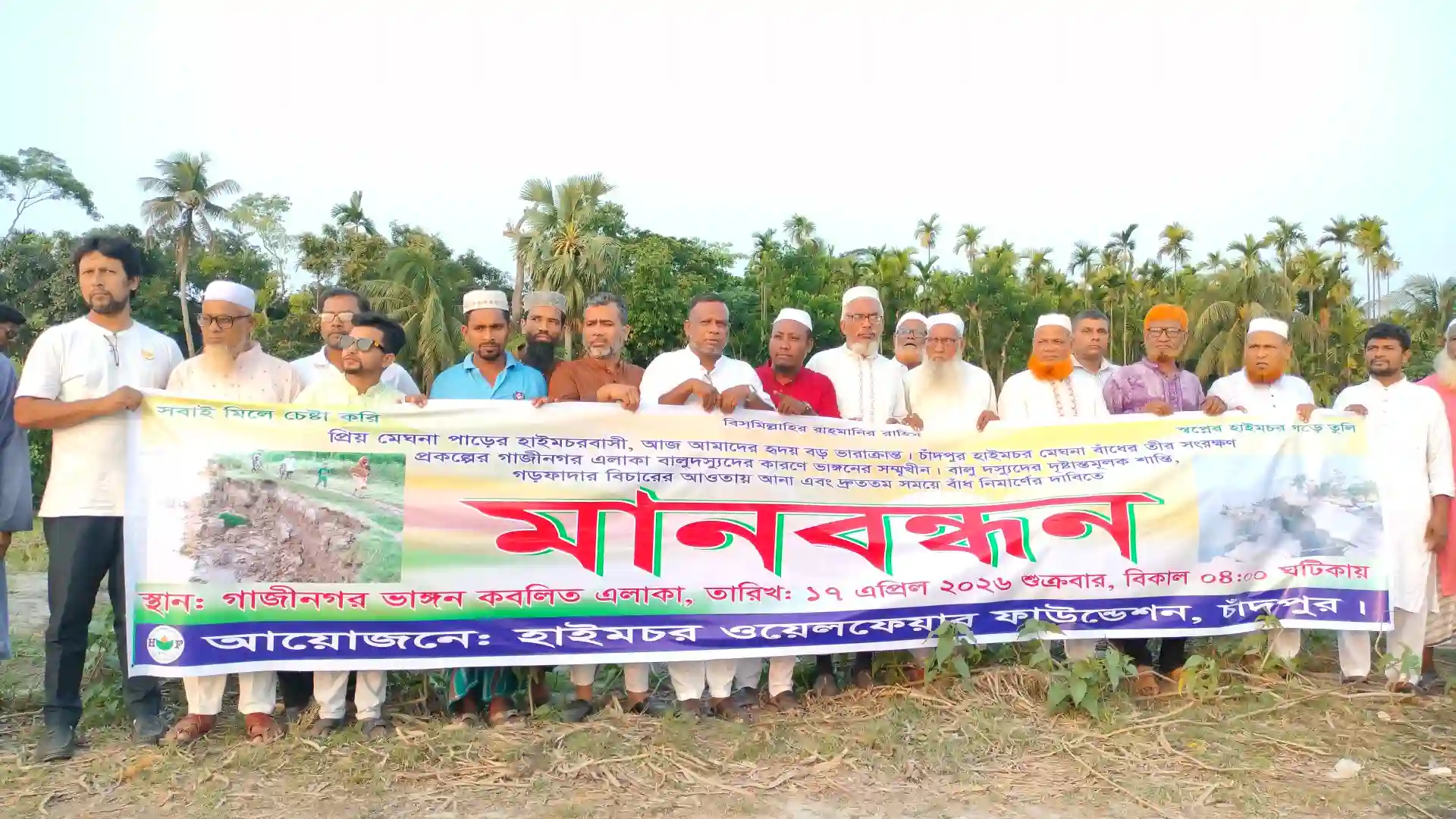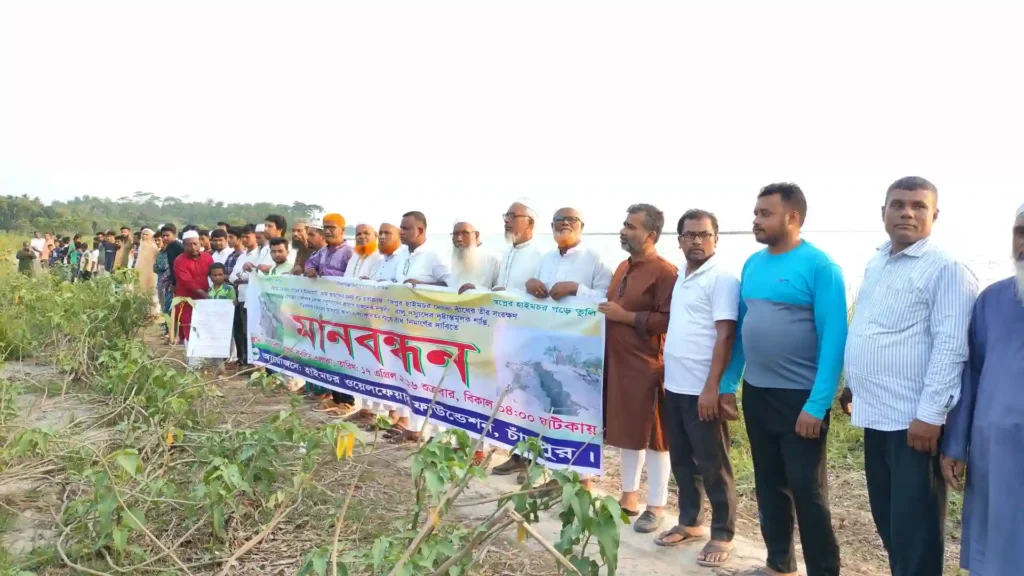 ​শুক্রবার (১৭ এপ্রিল) বিকেলে ‘হাইমচর ওয়েলফেয়ার ফাউন্ডেশন’-এর ব্যানারে আয়োজিত এই প্রতিবাদ সমাবেশে নদীর পাড় সংলগ্ন এলাকার কয়েক হাজার নারী-পুরুষ ও সাধারণ জনতা স্বতঃস্ফূর্তভাবে অংশ নেন।