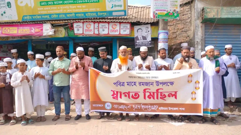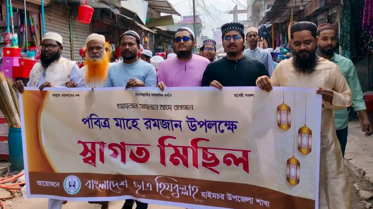 আসন্ন পবিত্র মাহে রমজানকে স্বাগত জানিয়ে চাঁদপুরের হাইমচরে বর্ণাঢ্য মিছিল ও আলোচনা সভা অনুষ্ঠিত হয়েছে।