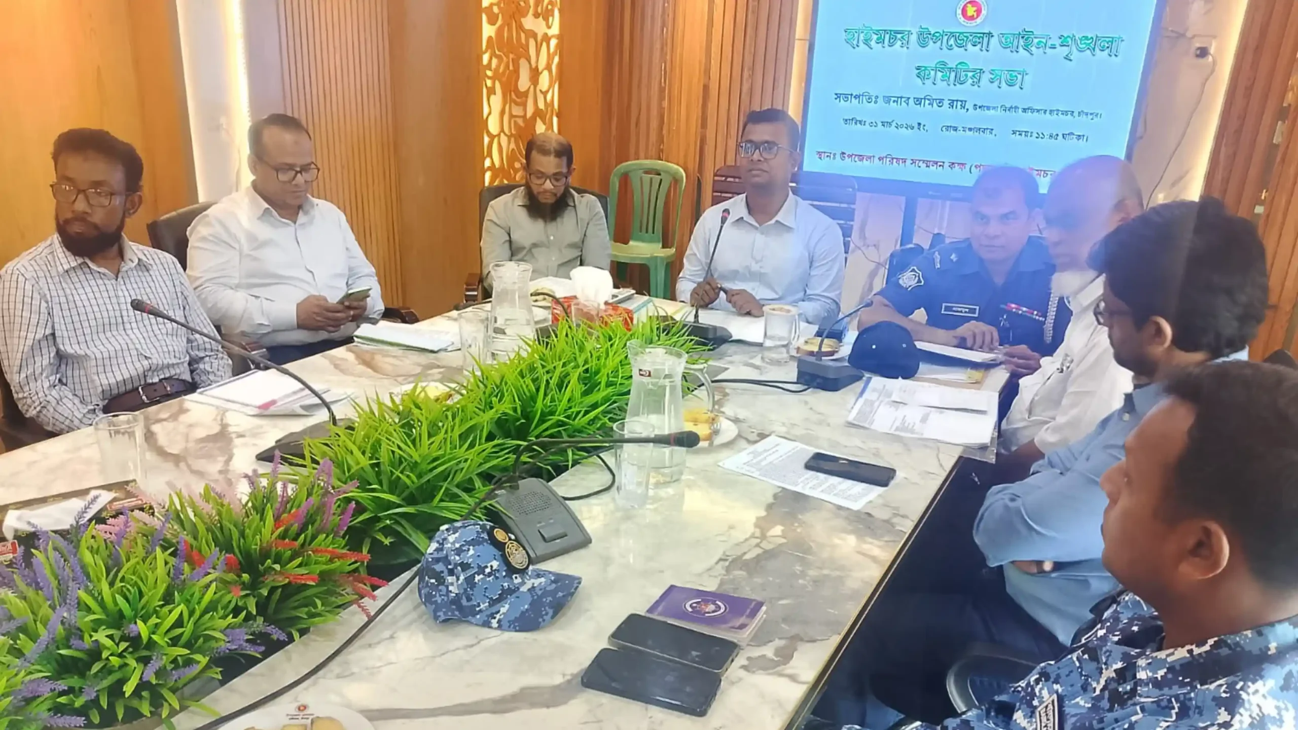সভায় হাইমচর থানা অফিসার ইনচার্জ (ওসি) মোহাম্মদ নাজমুল হাসান আইনশৃঙ্খলা রক্ষায় পুলিশের কঠোর অবস্থানের কথা জানান।