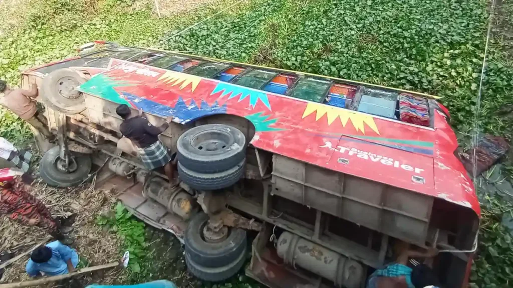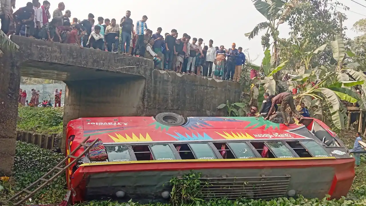 মতলবে নিয়ন্ত্রণ হারিয়ে খালে পড়ল যাত্রীবাহী বাস, আহত ১৭