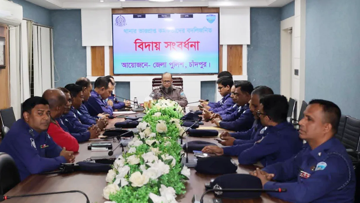 চাঁদপুর জেলা পুলিশের সকল থানার ভারপ্রাপ্ত কর্মকর্তাদের (ওসি) বদলিজনিত বিদায় সংবর্ধনা প্রদান করেছে জেলা পুলিশ। শনিবার ৬ ডিসেম্বর এক বর্ণাঢ্য অনুষ্ঠানের মাধ্যমে বিদায়ী কর্মকর্তাদের সম্মাননা জানানো হয়।