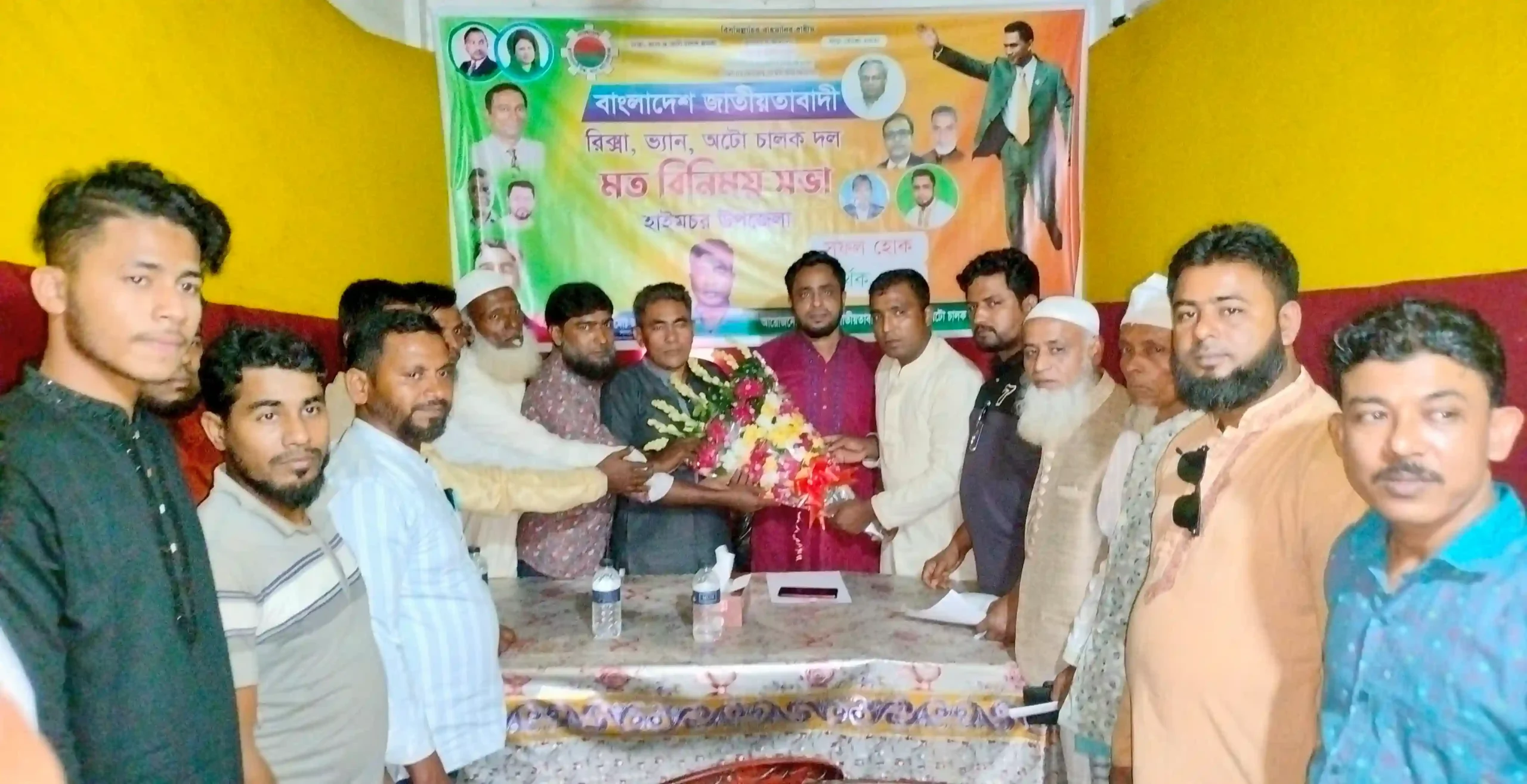 বাংলাদেশ জাতীয়তাবাদী রিক্সা, ভ্যান, অটো চালক দল হাইমচর উপজেলা শাখার এক মতবিনিময় সভা অনুষ্ঠিত হয়েছে।