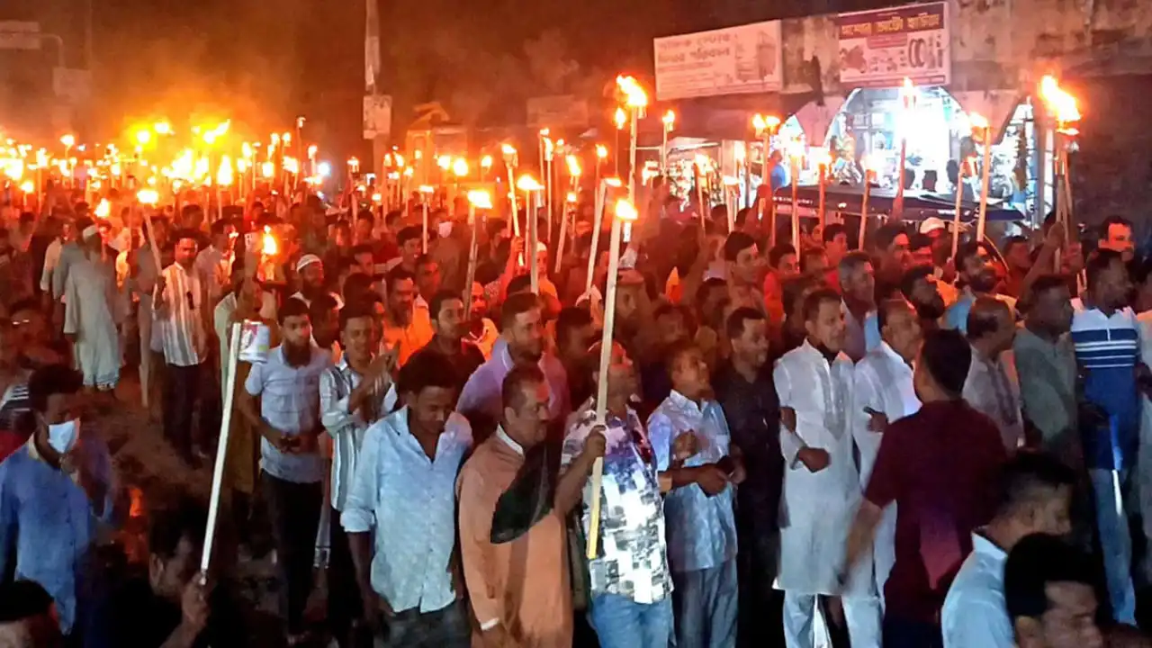 চাঁদপুরে ধানের শীষ প্রার্থীর পরিবর্তন দাবিতে মশাল মিছিল