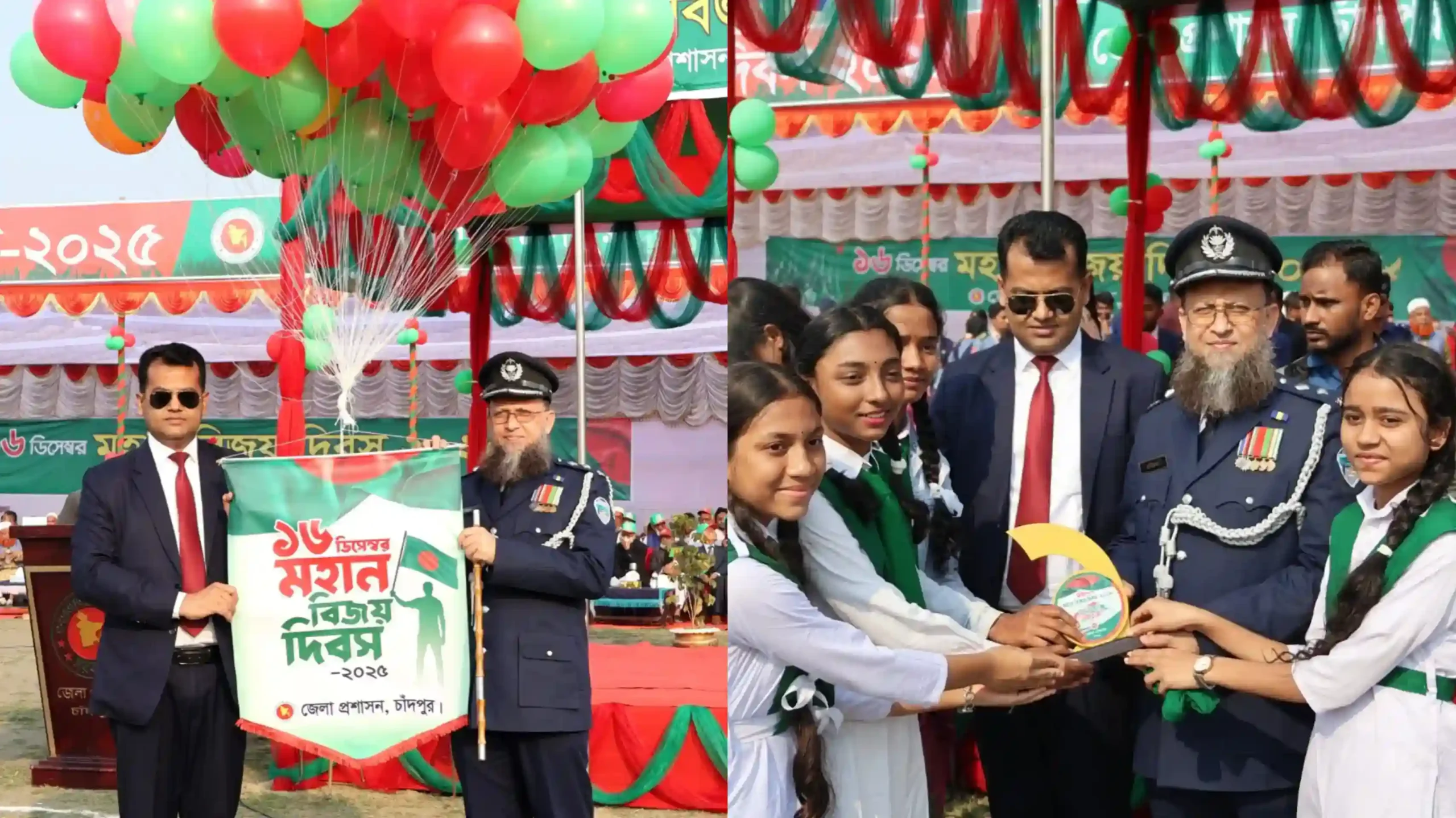 যথাযোগ্য মর্যাদা, উদ্দীপনা ও বর্ণাঢ্য আয়োজনের মধ্য দিয়ে চাঁদপুরে মহান বিজয় দিবস-২০২৫ উদযাপিত হয়েছে।