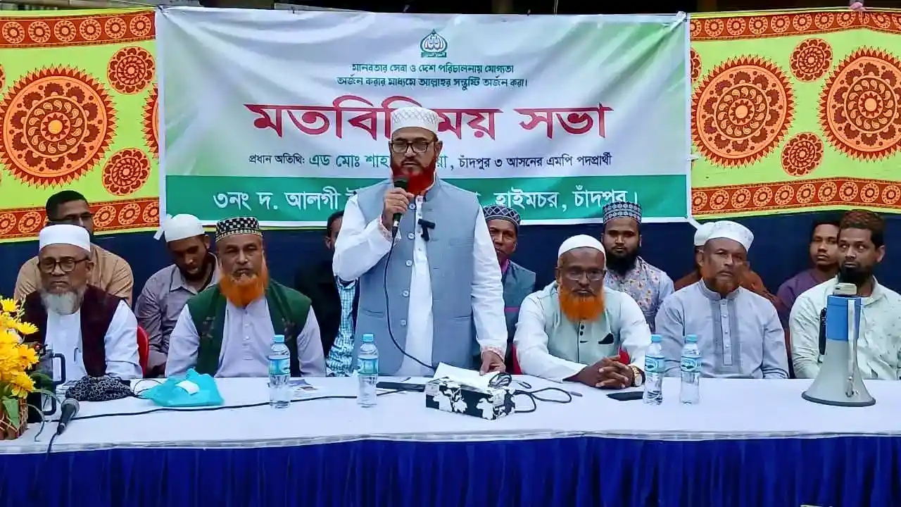 চাঁদপুর-৩ (সদর–হাইমচর) আসনে বাংলাদেশ জামায়াতে ইসলামী মনোনীত সংসদ সদস্য প্রার্থী ও জেলা জামায়াতের সেক্রেটারি অ্যাডভোকেট মো. শাহাজান মিয়া বলেছেন, জনগণের ভালোবাসা ও সমর্থন পেলে তিনি ঘুষমুক্ত প্রশাসন, ন্যায়ভিত্তিক সমাজ এবং টেকসই কর্মসংস্থান গড়তে কাজ করবেন।